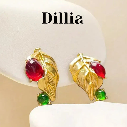 Leaf Inlaid Glaze Stone Copper Alloy Earrings