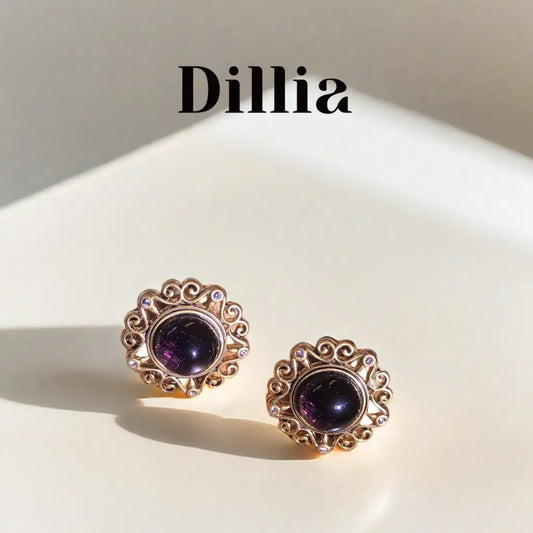 Vintage Amethyst Hollow Gold-Plated Stud Earrings