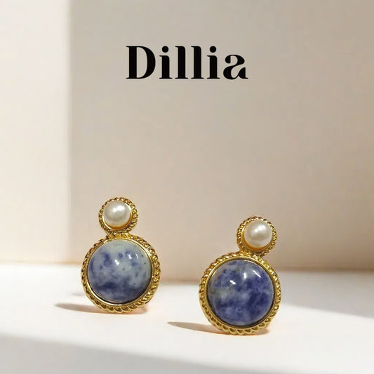 Elegant Pearl Accent Blue Smudge Glaze Stud Earrings