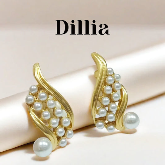 Elegant Wavy Pearl Inlay Gold Plated Earrings