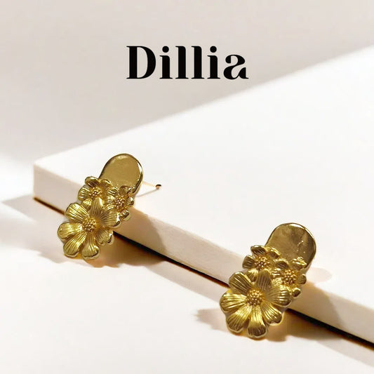 Chic Black and Gold Camellia Enamel Floral Stud Earrings