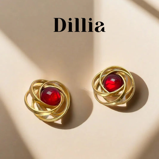 Nest-Shaped Red Glass Copper Alloy Vintage Earrings