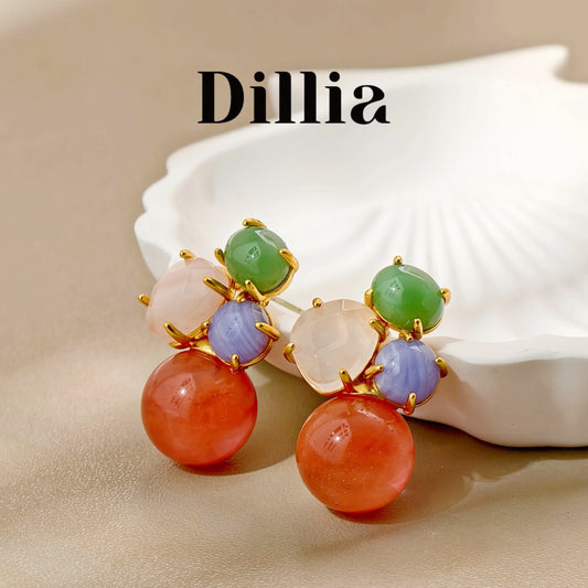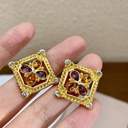 Vintage Cross Floral Two-Color Glass Amber Earrings