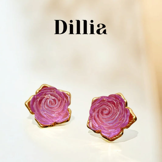 Enamel Camellia Irregular Gold-plated Stud Earrings