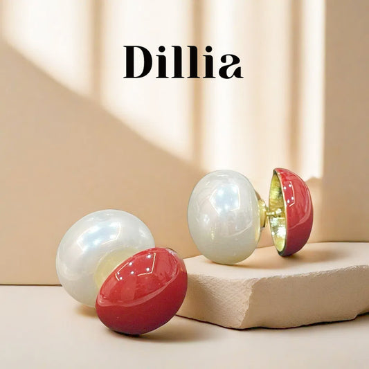 Enamel Mushroom-Shaped Pearl Stud Earrings