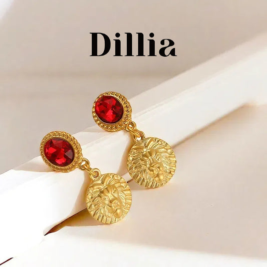 Golden Engraved Lion Vintage Glaze Stone Stud Vintage Earrings