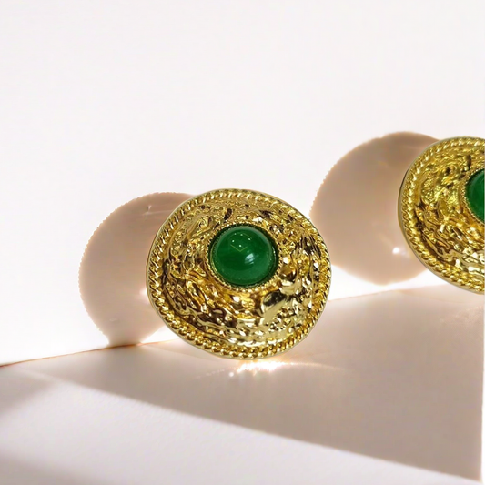 Vintage Green Glaze Stone Gold-Plated Stud Earrings